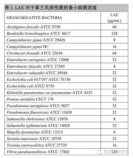 另外LAE对李斯特菌(ATCC15313)的MIC是32ug/ml,李斯特菌的发病率大约为10万分之一,近年来多次在美国、欧洲、加拿大等地区引起重大疫情,越来越多的引起各个国家的重视,然而能够对李斯特菌具有有效抑制的抑菌剂缺少之又少,应用月桂酰精氨酸乙酯盐酸盐的巴氏杀菌法被证实对李斯特菌具有有效的抵抗性,可以将其应用在食品防腐剂中。