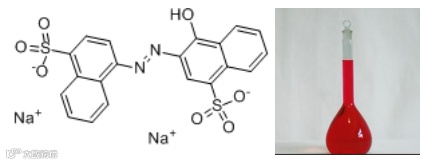 典型的可溶性偶氮着色剂是Cl 17200,两个-SO3使着色剂易溶于水。