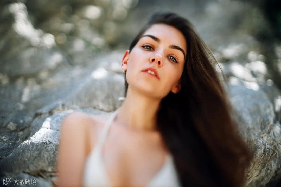 注意力集中到照片上,我们发现物距一样的地方,比如人物左边的岩石,应该处于焦平面,但是却被虚化了。