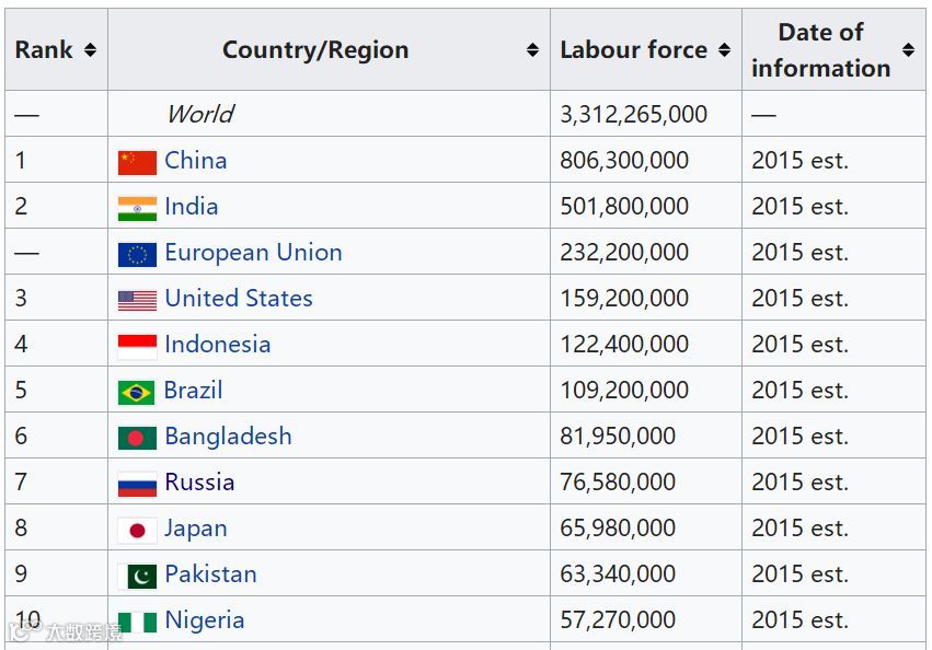 从图表中不难看出,中国的劳动总量稳居世界第一,甚至甩了位居世界第二的印度一整圈!