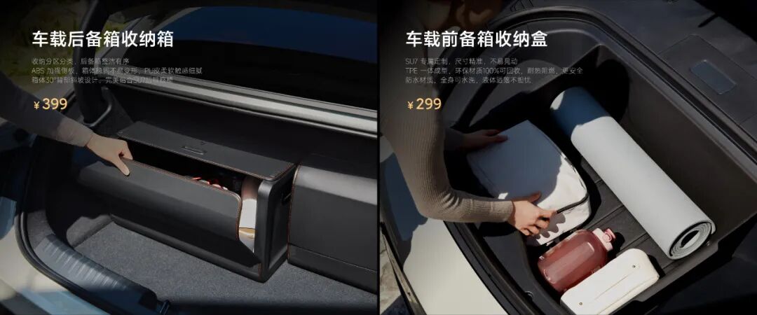 小米SU7 有着非常充足的储物空间,后备厢可以放一整套露营装备,前备箱放东西还可以避免跟座舱串味。