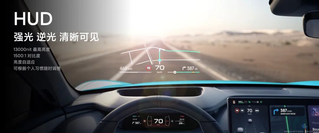 小米SU7 搭载 16.1 英寸 3K 超清中控屏,超大 56 英寸 HUD,翻转式仪表屏,每次启动都充满仪式感。此外,还能外接小米平板,作为生态拓展屏,打造车内五屏联动空间。搭载骁龙 8295 座舱芯片,使用体验非常流畅。