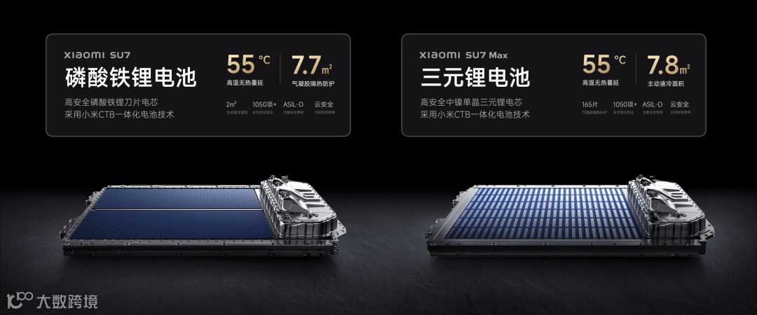 电池安全也做到了全链路无死角,实现 55°C 高温下,即便水冷系统不工作,也能确保无明火、无热蔓延发生。小米 CTB 一体化电池技术,经过了包括碰撞、挤压、火烧等在内的 1050 项安全测试,测试项目数是国家标准的 20 倍。