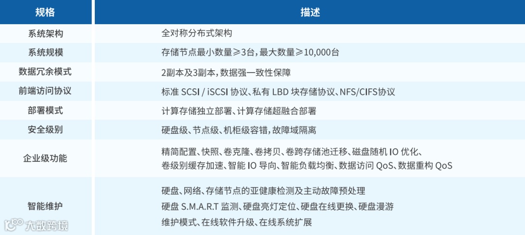 鹏云ZettaStor分布式块存储系统关键产品规格