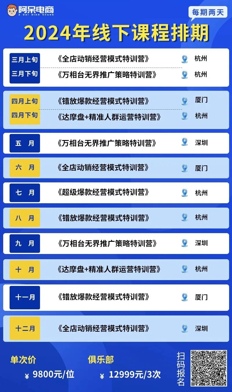 阿呆电商2024年线下课排期