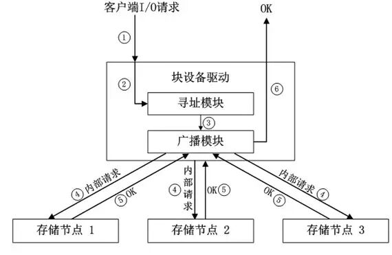 在一个ServerSAN系统中,通常会由客户端块设备驱动来负责接收外部IO请求,其处理方式亦寻址方式有多种:有些需要查询元数据库(Metadata Store,用于存放内部数据块的元数据,包括数据块在哪个存储节点上的信息);有的则利用Consistent Hashing的方法,直接计算出IO请求对应的内部存储地址,从而达到省略查询元数据库的目的。