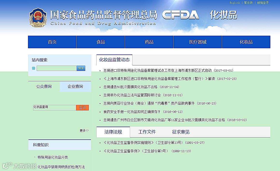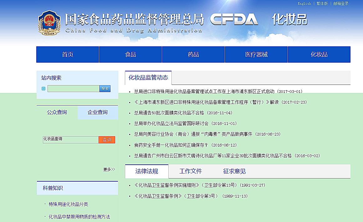 化妆品仙界的事情如果要查证,可以寻找“度娘”并输入“国家质量监督检验检疫总局”进入官网,然后依次点击“信息公开”→“业务信息”→“食品及化妆品”,如下: