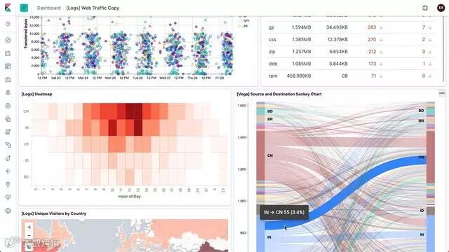 尽管如此,该工具仍然是需要日志可视化和分析的物联网应用程序的理想选择,因为它能够对数据查询进行“模糊匹配”。Kibana还为用户提供了高级可视化和数据管理功能,包括用于检测和探索数据集中异常的机器学习技术。