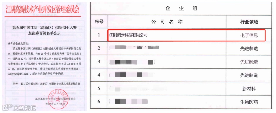 近日,南京鹏云网络科技有限公司(以下简称:鹏云网络)江阴子公司,凭借过硬的科技创新硬实力,在“第五届中国江阴(高新区)创新创业大赛”以及“‘霞客杯’中国江阴第五届创新创业大赛”中,一路过关斩将,势如破竹,纷纷闯入决赛阶段。