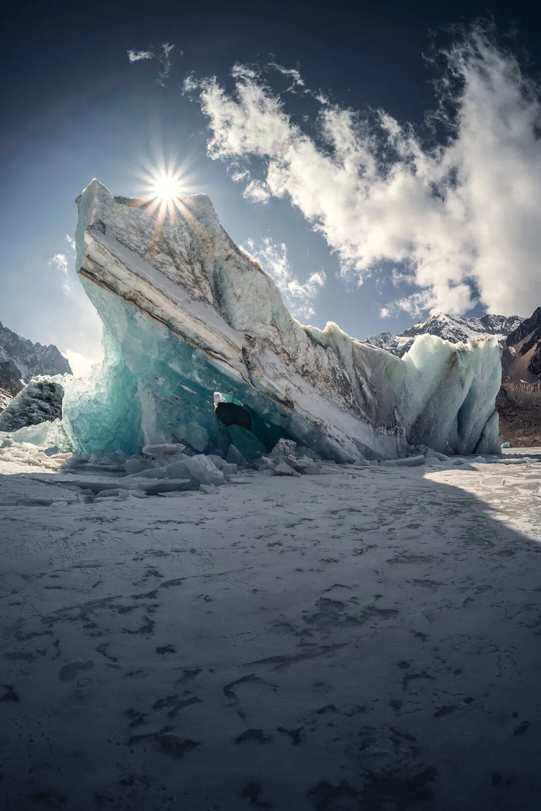 这是 11mm 鱼眼镜头的魔法,也是冰川的 “语言”