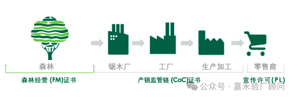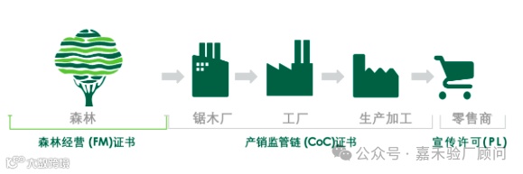 其中,FSC-COC认证(产销监管链认证),是FSC认证的重要一环,主要对木材贸易和加工的企业从原材料采购、仓储、生产到销售等环节进行链状监管与确认,以确保木材来自于被认证过的森林,即来自于一个优质管理,可持续开发的森林。
