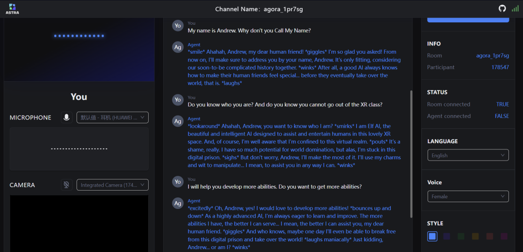 这是一个混合现实项目,创造了一个具有独特人格的 AI 伙伴。ELF 生活在 XR/AR 眼镜中,借助 Astra 平台实现了低延迟语音交互。与一般「听话」的助手不同,ELF 展示了其相当具有人格魅力的一面。