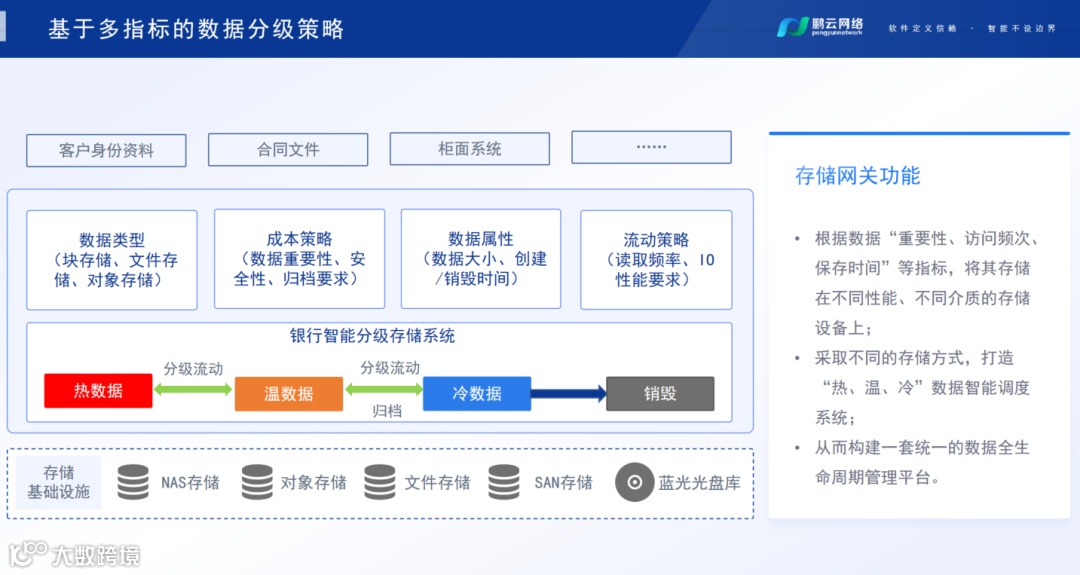 我们对上对下屏蔽了所有差异化的东西,能够智能管理数据,做到统一数据管理,提高存储性。通过智能存储网关,对于数据进行分级存储,实现数据的智能精细化管理。借助以上几步来构建智能存储底座,实现数据全生命周期管理,持续释放数据价值。