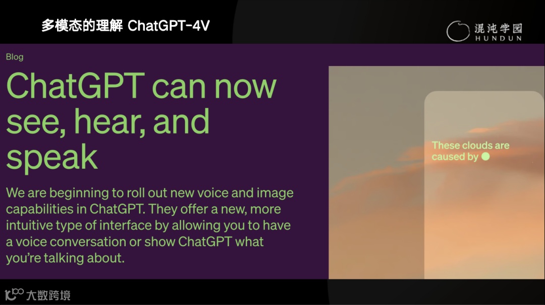 无论是Perplexity还是大模型,它们都是一个文字进文字出的单模态模型,而ChatGPT-4V最近已经可以做到看见、听见、说出。ChatGPT-4V的官方Demo讲述的就是在修车场景中,如果没有多模态模型,很难向ChatGPT描述清楚车到底有什么问题。有了多模态的理解,把图片传给它,它就可以告诉我们车哪里有问题,应该用什么工具去修。这对打开其在生活中的使用场景有很大的帮助。