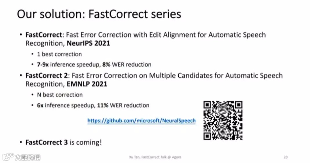 本文将介绍一种低延迟、高精度的纠错模型 FastCorrect,通过利用编辑对齐以及多个候选结果,在取得 10% 的词错误率下降的同时,将模型加速 6-9 倍,相关研究论文已被 NeurIPS 2021 和 EMNLP 2021 收录。