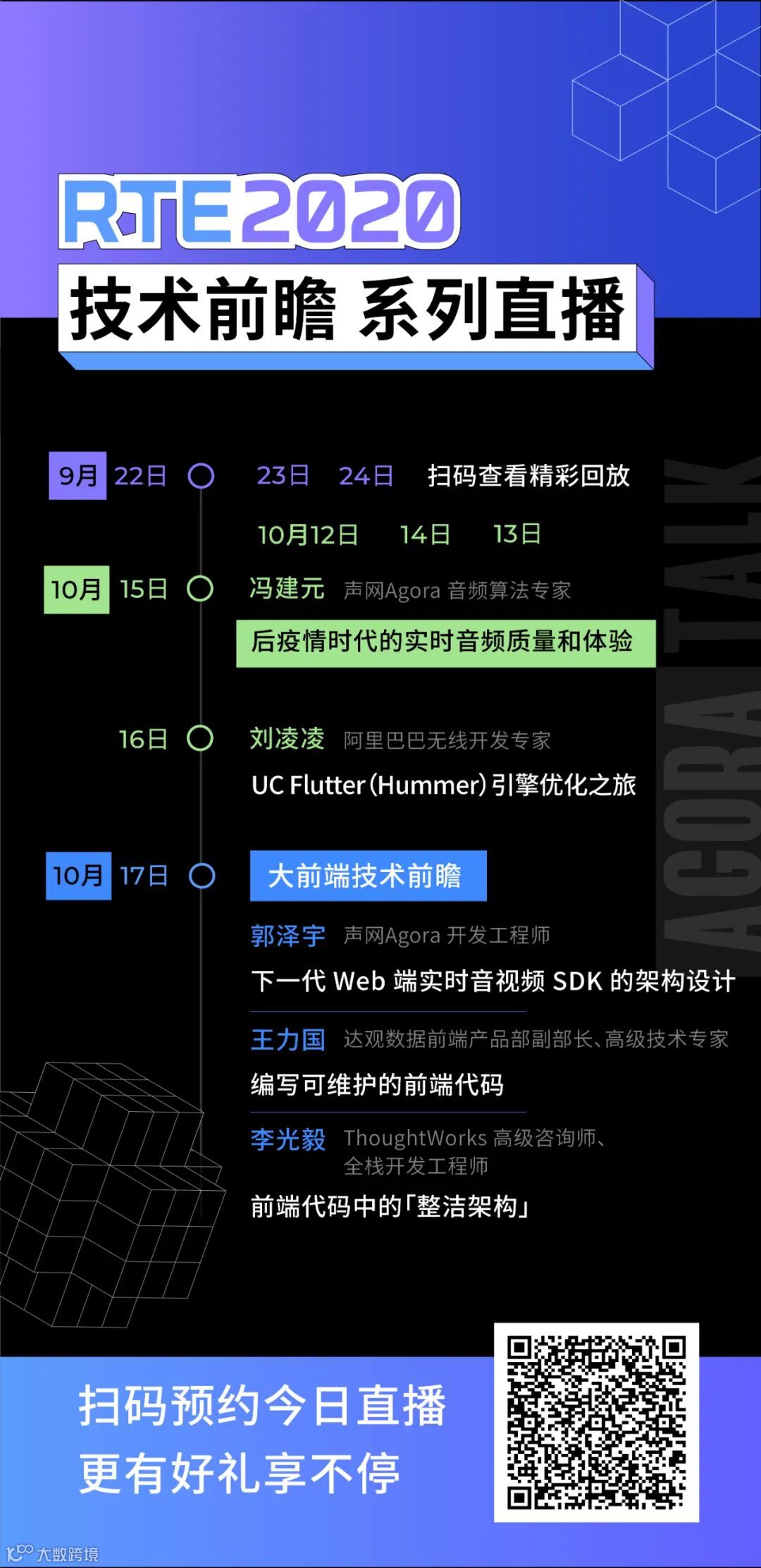在RTE 2020 实时互联网大会的「大前端技术专场」,还将有更多与 Flutter、WebRTC、WebAssembly 相关技术演讲。👇
