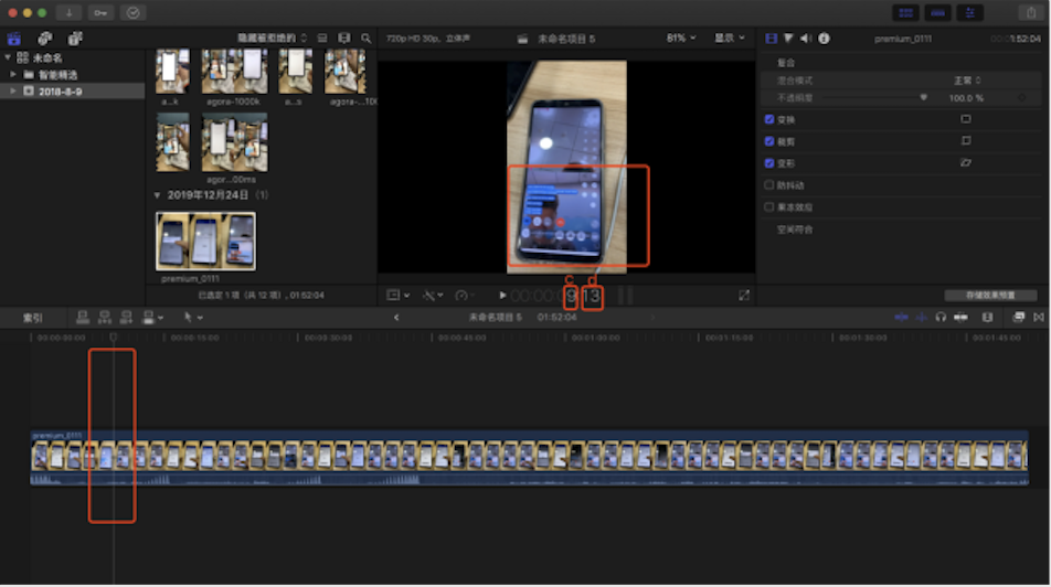 3、摆好图 1 的位置,然后用 iPhone 拍下 10s 视频,过 3-5 分钟后再拍下 10s 视频,再过 3-5 分钟后拍 10s 视频,共 3 段视频。