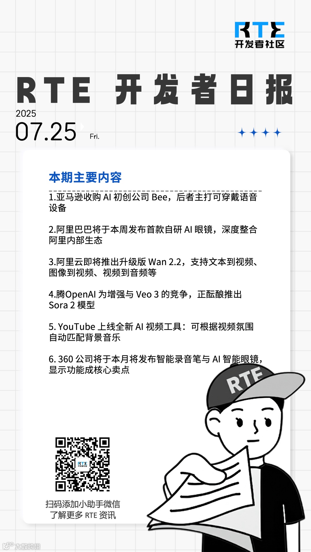 4、亚马逊收购 AI 初创公司 Bee,后者主打可穿戴语音设备