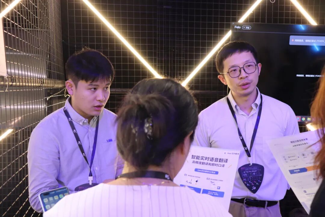 AI 陪伴玩具 FoloToy、AI 手机互动支架桌面机器人抱抱小白、AI 派对游戏、实时语音翻译 Felo、开源框架 Ten Framework、CREACTOR.AI 多角色多模态生成、企业级混合现实人机协同平台萤火空间,还有蚁触科技的朋友们纷纷上台,与开发者们进行面对面交流。