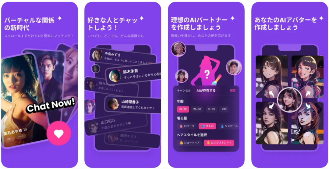 与 Character.AI 一样,用户可以为自己创建专属 AI 伴侣,简单选择性别、年龄、肤色及发型等要素后,便可从 App 生成的形象中选择心仪的一款。