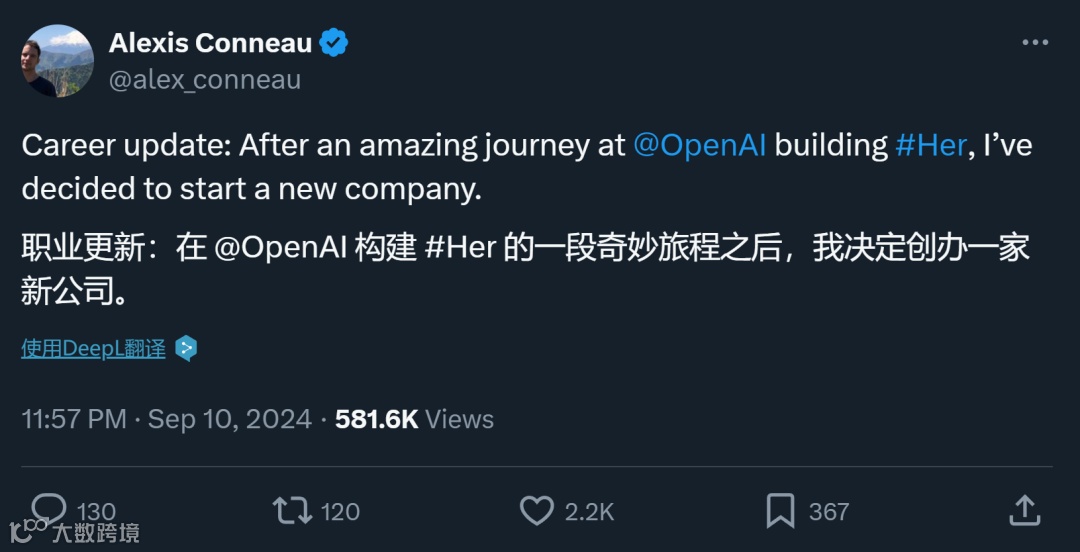 3、GPT-4o 实时音频项目负责人离职创业,曾在 OpenAI 最早提出构建「Her」