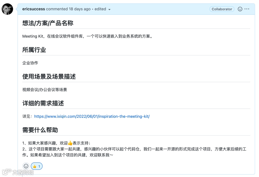● 灵感提交链接:shttps://github.com/AgoraIO-Community/Idea-Box/issues