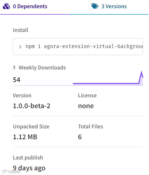 至此,声网发布了 Web SDK v4.5.0,并在 npmjs 上线了独立的 Web 虚拟背景插件,成为音视频云 toB 行业中首先在 Web SDK 产品中支持该功能的服务商。