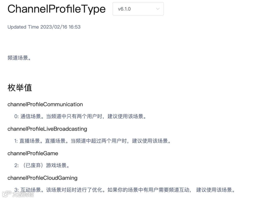 channelProfile 选择 channelProfileLiveBroadcasting ,因为我们需要的是多人通话。