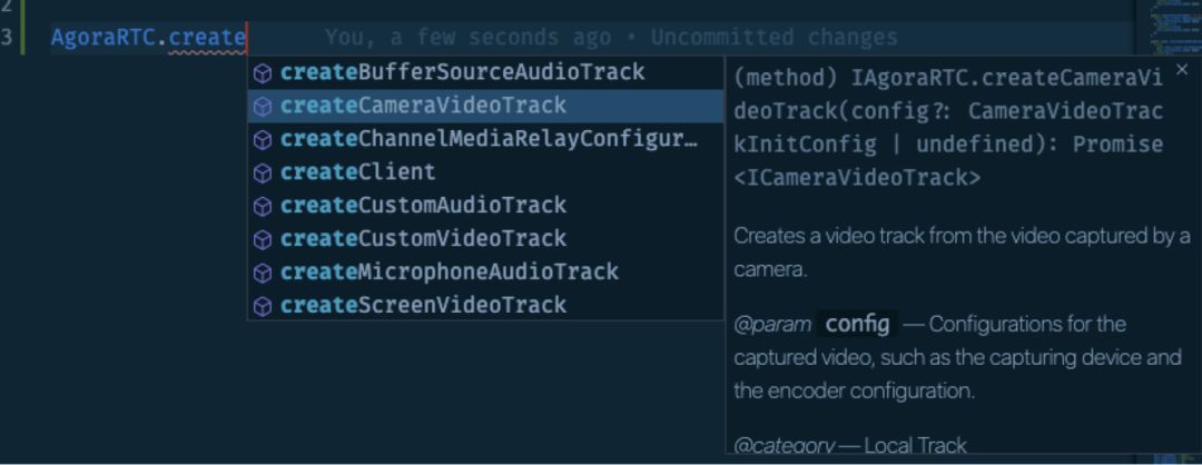 细心的你可能会发现,在新的 SDK 中,采集本地流被拆分成了 2 个方法 (createMicrophoneAudioTrack 和 createCameraVideoTrack),返回的不是一个 Stream 对象 而是两个 Track 对象。这也是一大改动,我们会在后面介绍。