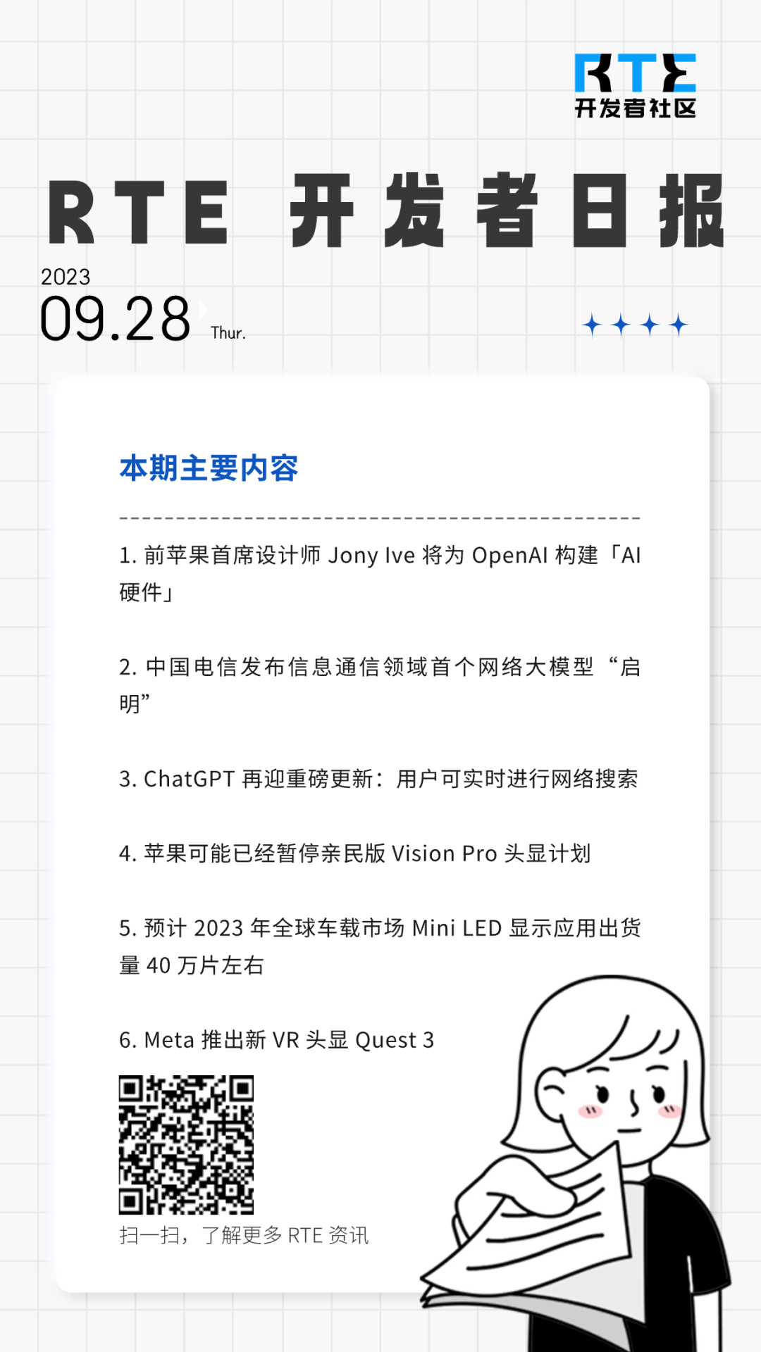 这里是「RTE 开发者日报」,每天和大家一起看新闻、聊八卦。我们的社区编辑团队会整理分享 RTE (Real Time Engagement) 领域内「有话题的新闻」、「有态度的观点」、「有意思的数据」、「有思考的文章」、「有看点的会议」,但内容仅代表编辑的个人观点,欢迎大家留言、跟帖、讨论。