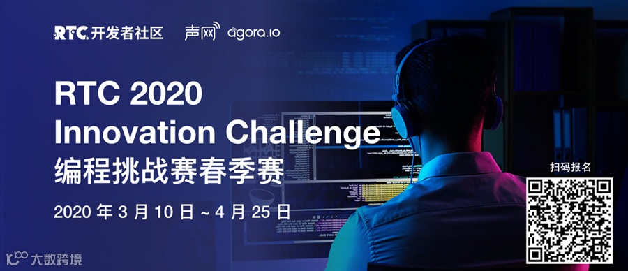 RTC 2020 编程挑战赛春季赛已经开启报名了!本次大赛从 3月10日 ~ 4月21日 进行报名、组队与开发,4 月 22 日至 4 月 24 日提交作品,4 月 25 日评奖,全程在线上进行。本次大赛准备了丰厚的大奖,获奖者更有机会进入声网 Agora 应聘快速通道,快拉上小伙伴报名吧!