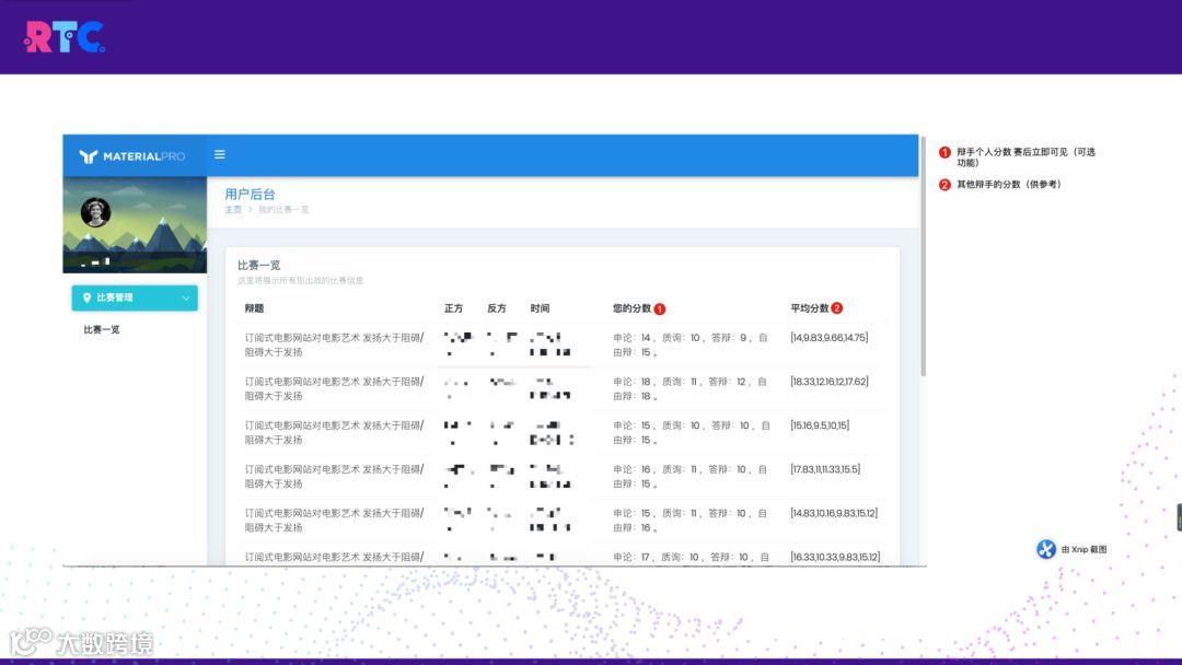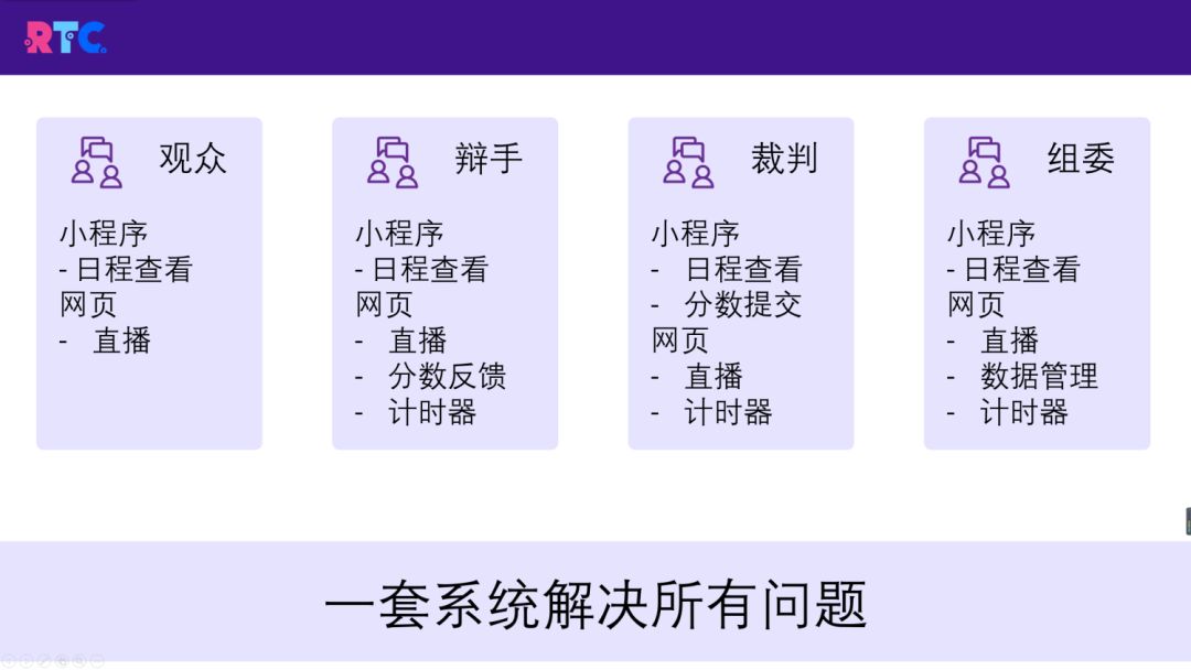 我们 2019 年 RTC 创新编程挑战赛的三强之一,“辩之竹”团队实现了一套功能完整的辩论系统,能计时、在线辩论、裁判视频点评,还能统计票数等。而且,它已经应用于很多辩论比赛中。于是我们让“辩之竹”撰写分享了一下作品的初衷,还有核心功能的实现: