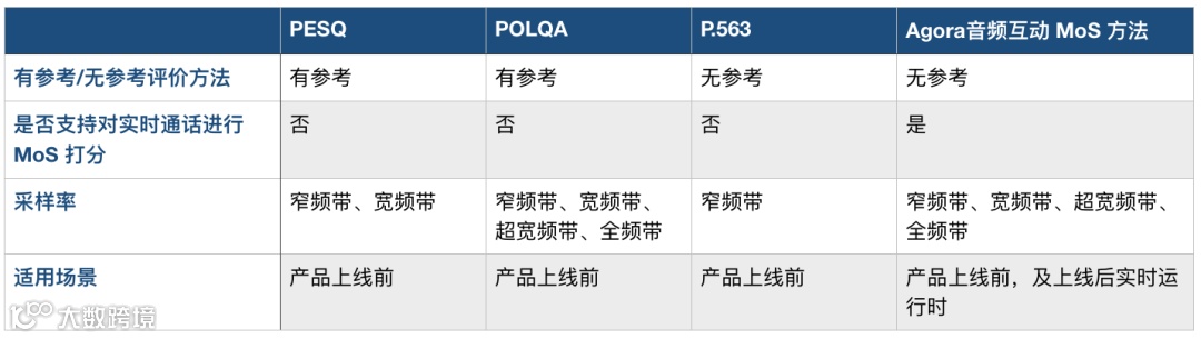 图:Agora 音频互动 MoS 方法与行业现有评价方法对比