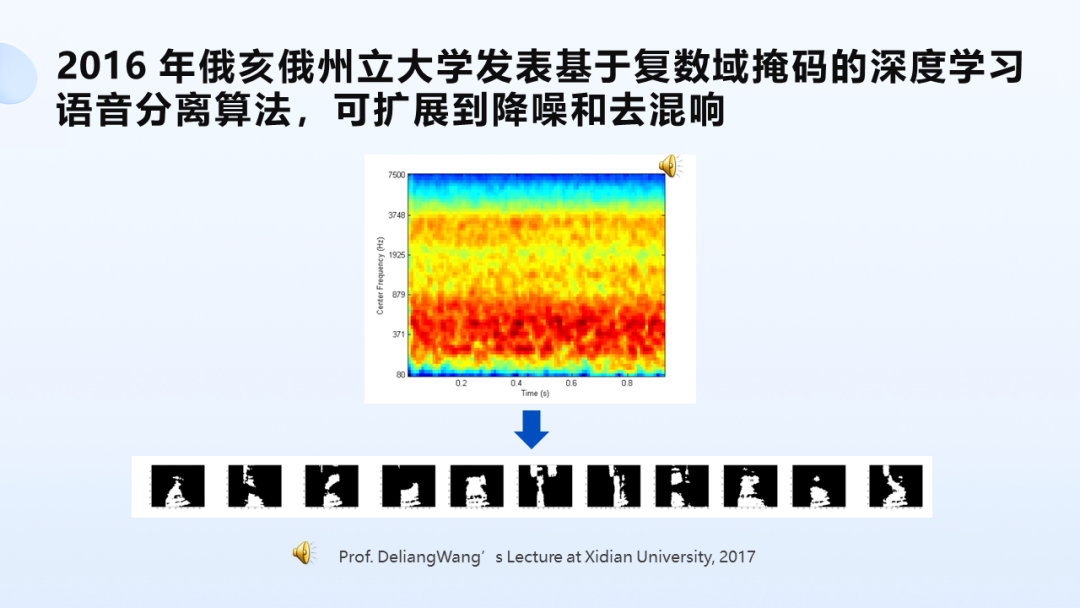 2016 年俄亥俄州立大学发表了基于复数域掩码的深度学习语音分离算法,可以扩展到降噪和去混响里面。