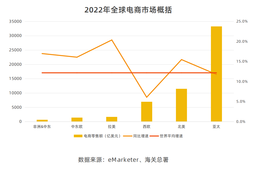 拉美已经成为电商的新战场。据 eMarketer 数据预计,2022 年拉美电商增速为 20.6%,这一增速排名全球第二,仅次于东南亚地区。