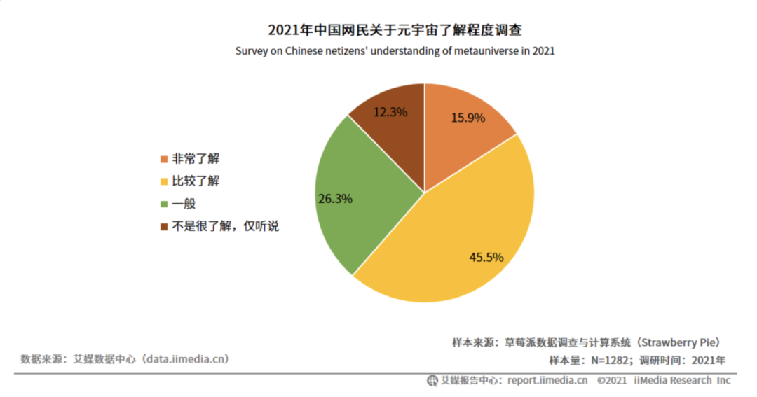 对于消费者在元宇宙的了解这一步来看,我们找到了以下的数据。调查显示,我们对元宇宙了解程度普遍较高,因为元宇宙一词近年来接连被提及,特别是疫情情况下对于新型社交类型的强需求,Facebook 的改名、微软收购动视暴雪、百度推出了希攘,这一系列的信息让网民对于元宇宙的概念已经有了一个基本的认知环境。经数据调查,所有受访的网友都听过元宇宙的概念,其中 61.4% 的网友对于元宇宙比较熟悉,15.9% 更是非常了解,对于元宇宙消费者有什么期待呢?