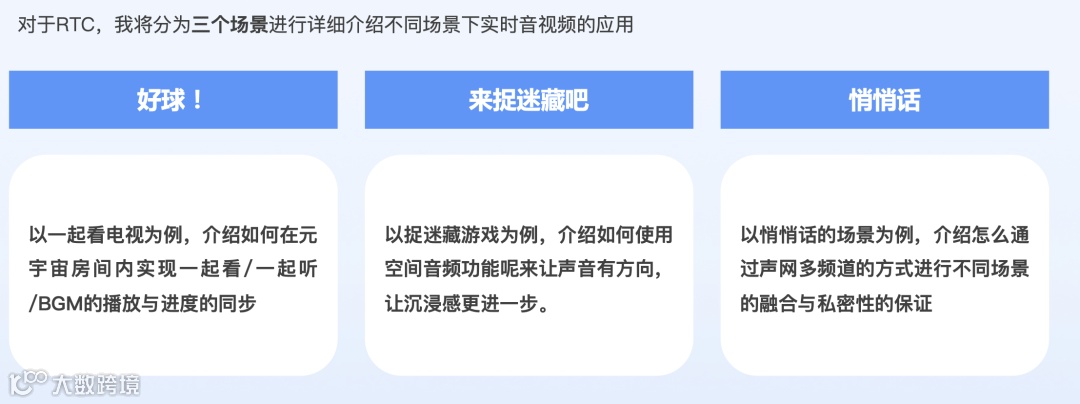 接下来,我主要会通过以下三个互动场景作为重点,来给大家介绍一下在元宇宙场景中这些场景的注意事项和实践的方式。