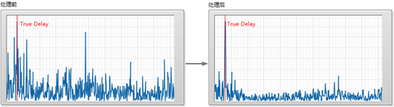 声网延迟估计算法通过降低信号之间的相关性(de-correlate),能够有效抑制 local maxima 的值以大大增强算法的鲁棒性。如下图所示,左边是原始信号之间的互相关,右边是声网SDK处理后的互相关,可见信号的预处理大大增强了延迟估计的鲁棒性: