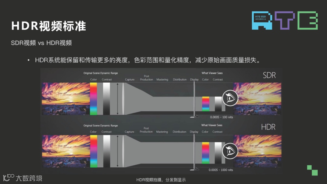 在视频的拍摄和分发系统上,HDR 视频可以更多的保留原始画面颜色信息以及亮度信息,呈现给用户更好的画质感受。