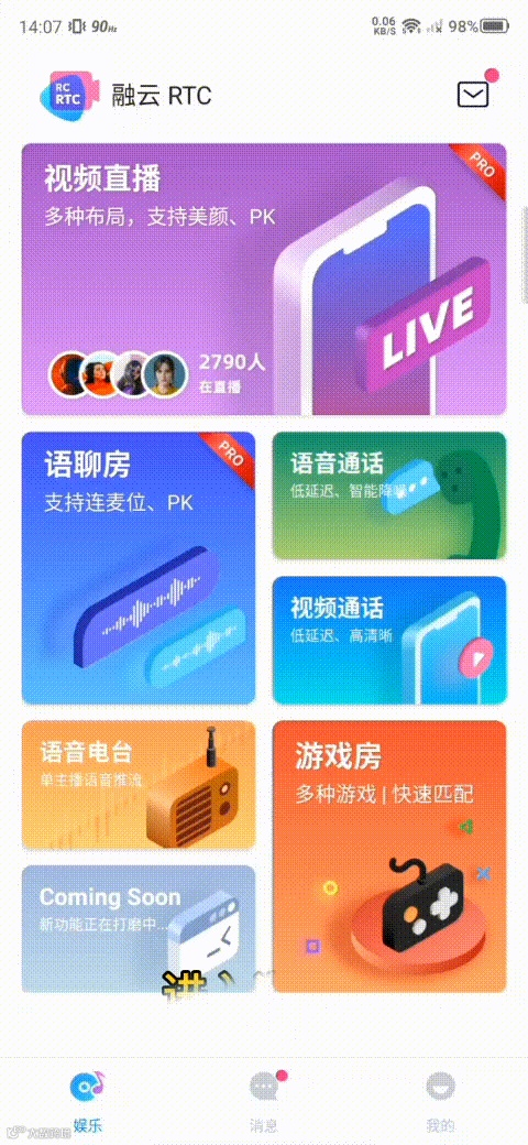 融云互动游戏服务,助力社交、泛娱乐应用抓住这一趋势。语聊房之外,视频直播、1V1 聊天、IM 聊天、游戏平台、实时社区等,都可以通过融云互动游戏 SDK,快速融合游戏性。