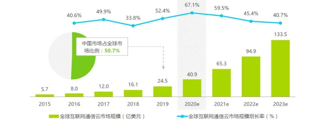 这在艾瑞报告中也有非常明确的体现。报告称,疫情影响下,用户对在线应用的需求激增带动了企业在各类场景,如在线教育、在线庭审、金融面签等对通信云服务的使用量,预计全年全球互联网通信云市场将实现 67.1% 的同比增长。