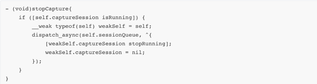 注意:AVCaptureSession 的调用是会阻塞线程的,建议单独开辟子线程处理。