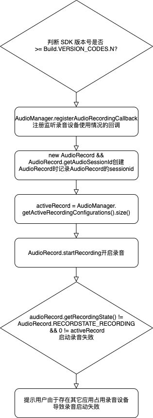 综合以上调研结果,最终我在使用 AudioRecord 录音时,录音抢占逻辑流程实现如下。