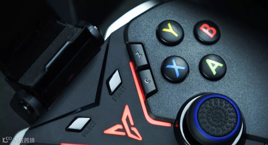 不止背面,正面也在传统手柄技能按键只有ABXY键的局限上,增加了C键和Z键。在《王者荣耀》这样多技能重竞技的MOBA手游中,可以有更多技能按键的选择,补兵补塔一键到位。