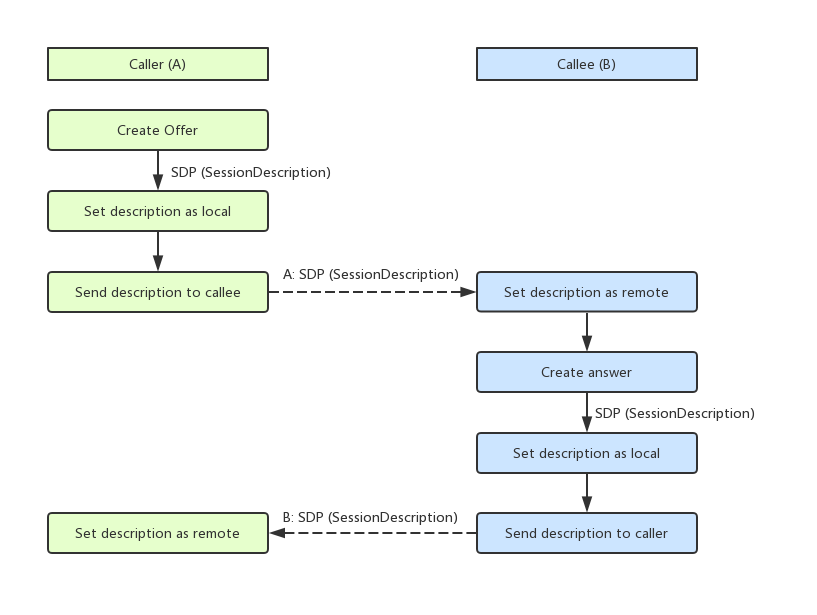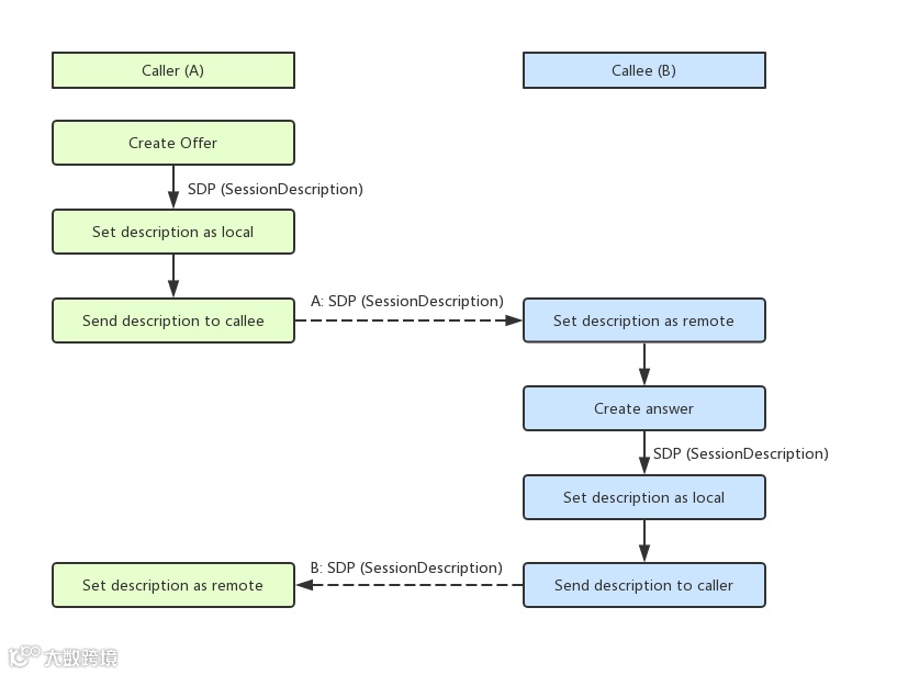 我们需要通过信令来控制 WebRTC ,并且在此基础上构建各种业务逻辑。信令即协调通讯的过程,应用要发起一个音视频通话,通常需要在客户端之间交换如下信息: