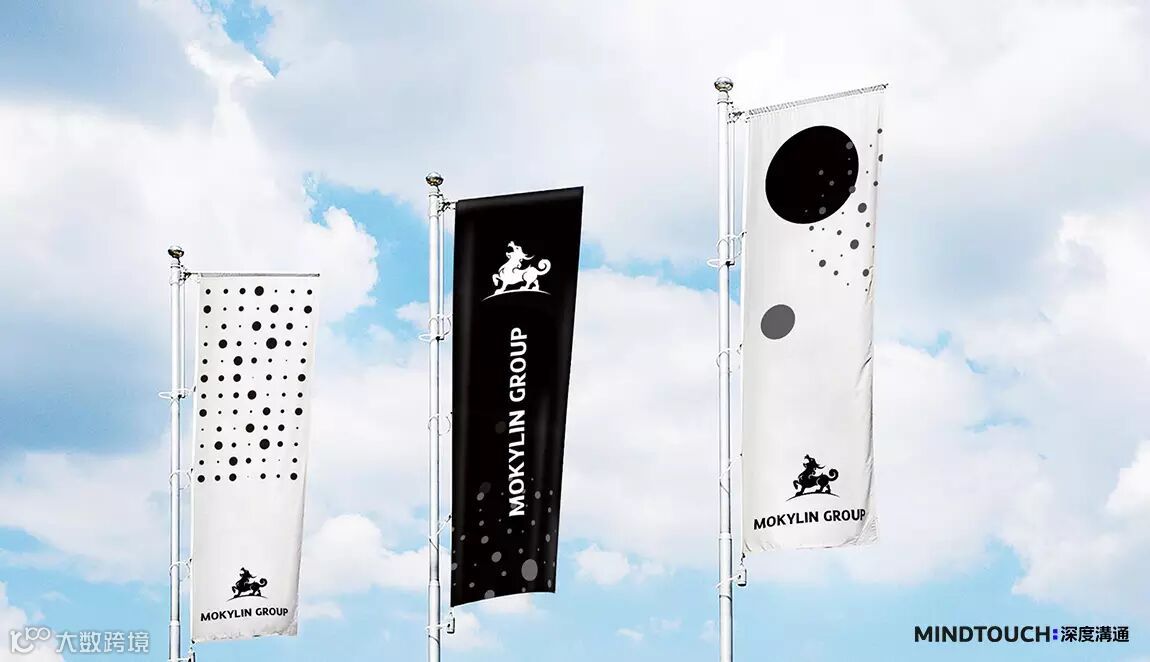 首先我们将原有麒麟进行了优化,使原来四平八稳的形象更有活力和张扬,另外麒麟脚踏一个全球化弧线,与全球化相呼应。其次我们将墨麟集团中文字进行了重新设计,首先我们将字形调正,其次我们根据麒麟图形的设计弧线进行了字体修饰。
