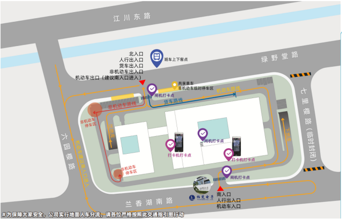 导航可直接输入“上海柏楚电子科技股份有限公司”,公司内部设置了地下停车场供大家使用,内部路线及停车场安排如图: