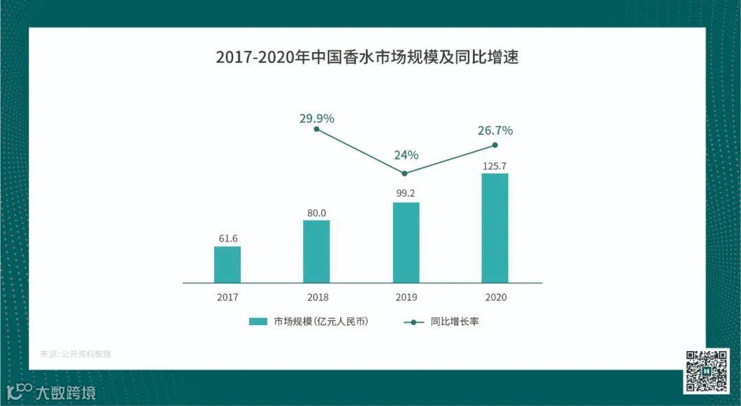 资本背书助推气味经济站上了新风口,国内多个香氛品牌获得了千万元级别的融资。据《2020年中国香水行业研究白皮书》,全球香水市场规模约为4063亿元人民币,中国在其中的占比仅为2.5%。但相较于2019年,2020年规模增速达到26.6%,市场正在加速渗透。