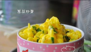 2.锅内放油(40克),烧热,将蛋汁倒入,炒好倒出。