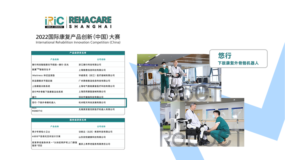 * 程天科技悠行外骨骼获2022国际康复产品创新(中国)大赛产品组奖项
